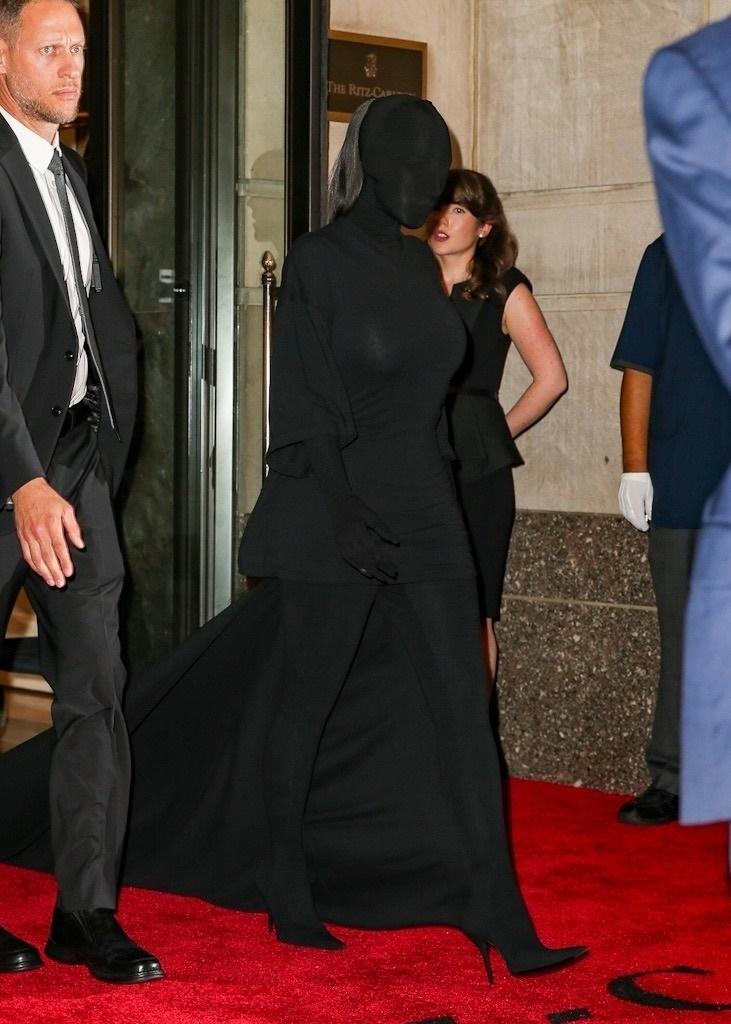 В 2019 году на Met Gala Ким доказала, что «голый» наряд может быть не просто эпатажем, но и высоким искусством. На ней было платье от Mugler телесного цвета, с ювелирной точностью имитировавшее обнаженное тело, с которого стекают капли воды. Это была первая работа самого Тьерри Мюглера за два десятилетия, вдохновленная культовым образом Софи Лорен из фильма «Мальчик на дельфине». Наряд из бежевого латекса, украшенный сложнейшей вышивкой из бисера и полупрозрачных кристаллов Swarovski, сидел настолько туго, что Ким едва могла дышать и двигаться. Сидеть в нем было физически невозможно.