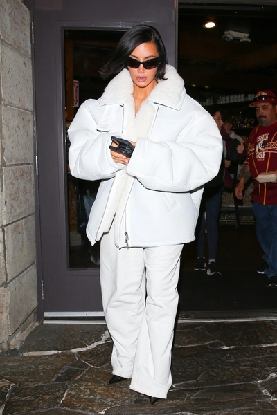 Свои сверхженственные, пышные формы Ким научилась не просто демонстрировать, но и выгодно обыгрывать с помощью контраста. Один из ее фирменных стилистических приемов — сочетание с грубой, маскулинной одеждой, включая вещи, будто позаимствованные из гардеробов ее бывших возлюбленных. Чаще всего на ней можно увидеть мужские рубашки, оверсайз-свитшоты, объемные пиджаки, дубленки и шубы, которые благодаря ее невысокому росту она носит как мини-платья. Это не только эффектный ход, но и практичный лайфхак для всех миниатюрных девушек, которые не боятся сочетать объемные вещи с высоченными каблуками.