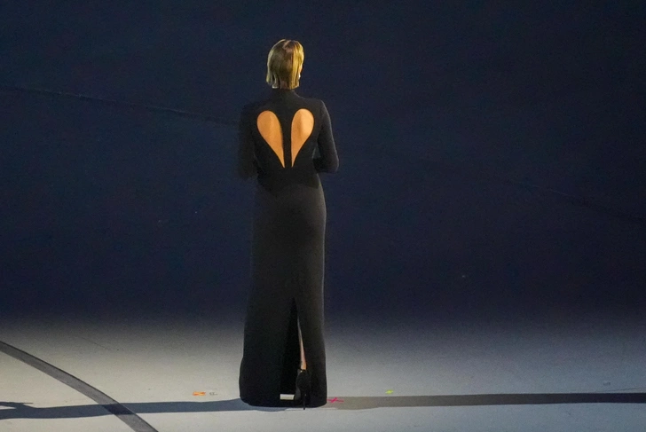 А Шарлиз Терон на правах амбассадора ООН выступила на церемонии открытия Олимпийских игр в лаконичном черном маски Versace с вырезом-«сердечком» на груди и спине.