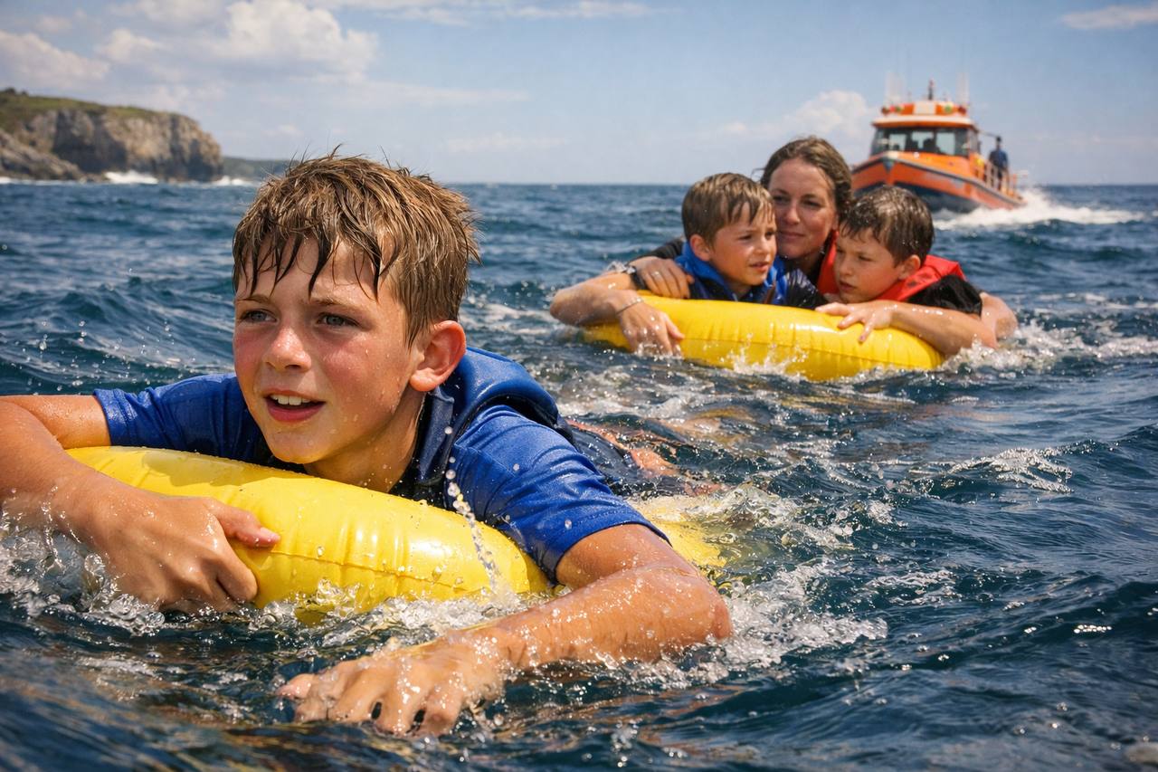 Инцидент произошёл в Квиндалупе, в 200 км к югу от Перта, когда семья отдыхала на побережье. В пятницу днем сильный ветер снес надувные доски и байдарку в открытое море у залива Географ. Подросток четыре часа плыл к берегу, после чего пробежал два километра до телефона, чтобы вызвать помощь.