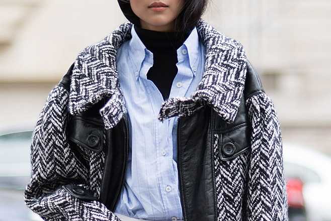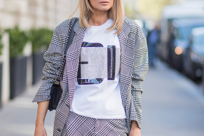 После 40 лет нужно всеми правдами и неправдами избегать серости и уныния в гардеробе. Необходимо уметь отличать базовую цветовую гамму от той, что будет вас беспощадно старить. Опасность представляют меланжевые фактуры, классическая клетка и узор «елочка», популярные в осенне-зимний период. Если вы не можете жить без серого, выбирайте более глубокие и благородные оттенки. Цвета мокрого асфальта, грозового неба или холодной стали смотрятся куда интереснее старомодного меланжа.