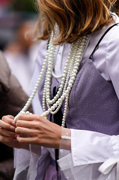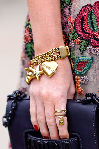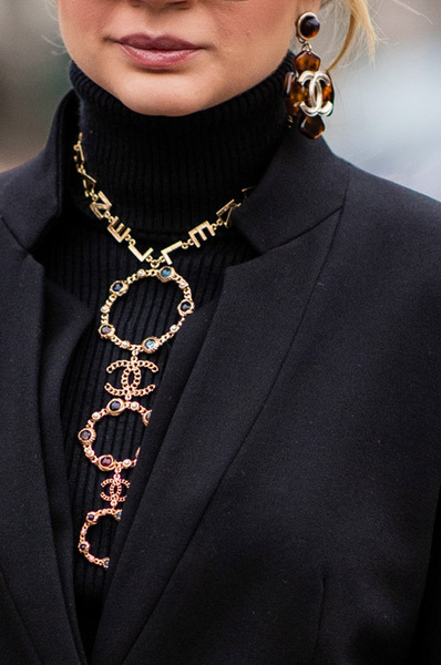 Массивная бижутерия и драгоценности в стиле «дорого-богато» выглядят вычурно и не красят ни 20-летних, ни 40-летних. Крупные камни, золото, вензеля, многослойные жемчуга, логотипы – от подобных украшений буквально несет нафталином. Они могут гармонично смотреться лишь с контрастными по стилю предметами гардероба вроде спортивного костюма или комплекта в духе нормкор. На женщинах же элегантного возраста такого рода ансамбли выглядят не слишком уместно.
