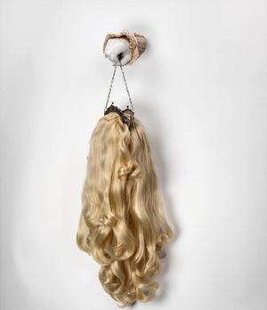Произведения Ингельс, понятное дело, штучный товар. За подделки в интернете просят 5-8 тысяч рублей, работу художницы мы нашли на просторах Сети за 15 тысяч. По легенде, шведка использует не просто парики, а волосы выброшенных кукол. Странно, что остальные части пупсом и барби никак не пригодились — как насчет ожерелья из кукольных голов, как у Тани Тузовой?