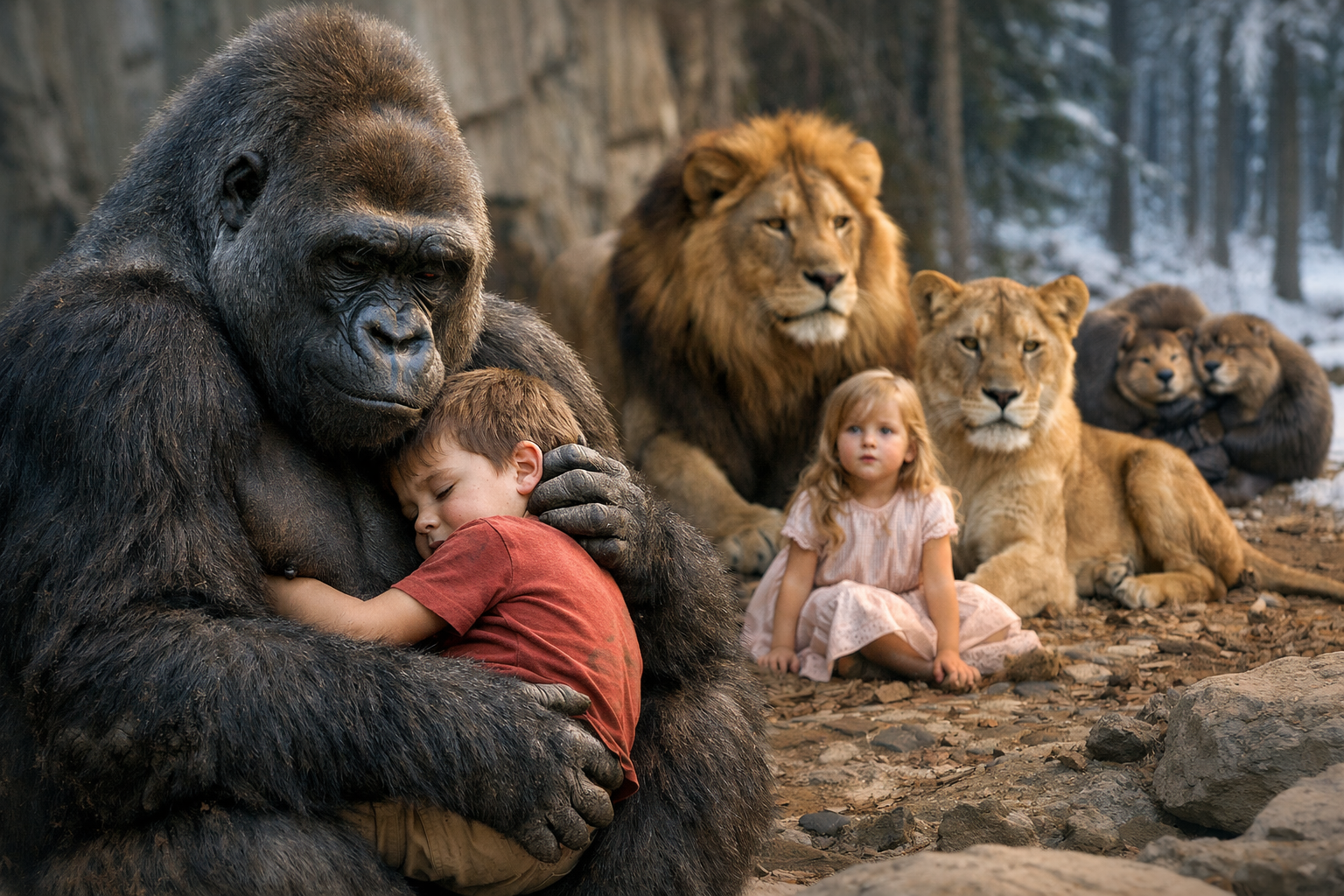 Три льва охраняли похищенную девочку до приезда полиции