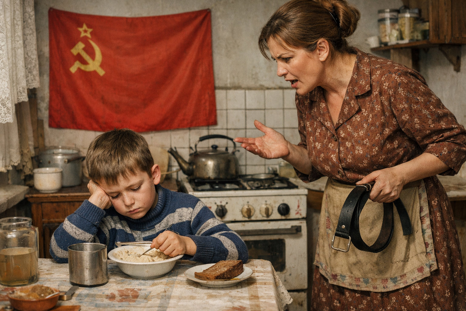 В советских семьях физические наказания были абсолютной нормой. Ремень висел на видном месте, и каждый ребёнок знал, что за двойку, разбитое окно или позднее возвращение домой его ждёт «воспитательная беседа» с участием этого предмета. Некоторые родители шли дальше: в ход шли тапки, полотенца, а в особо тяжёлых случаях и то, что подвернётся под руку. «Меня били, и я вырос нормальным» до сих пор звучит как аргумент.