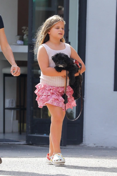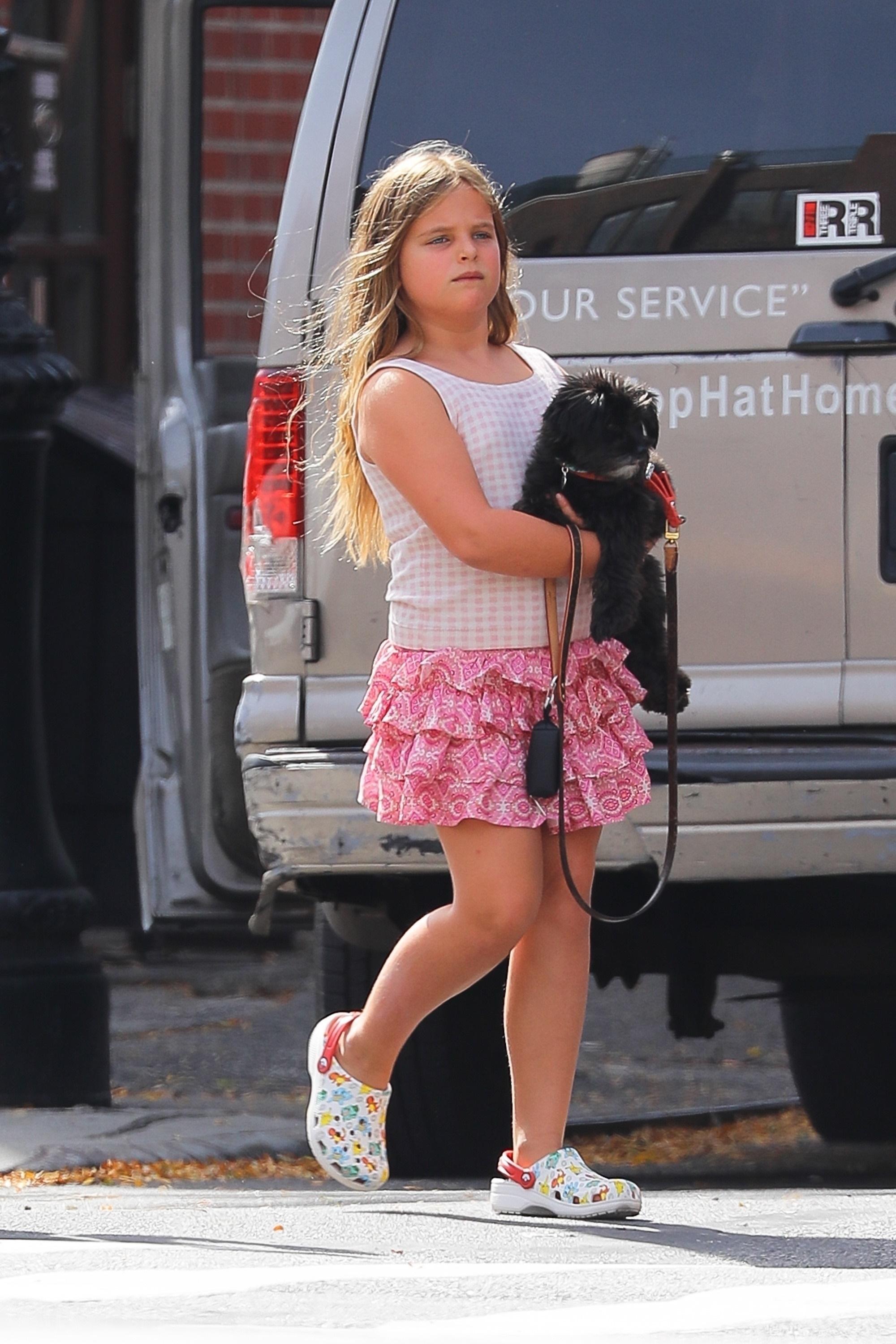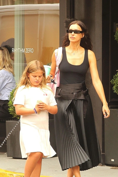 Ирина Шейк попала в объективы уличных фотографов во время прогулки в Нью-Йорке вместе с восьмилетней дочерью Леей. Российская модель забрала девочку из школы: туда она отправилась на спортивном — в легинсах, футболке, кроссовках на каблуках и с большой сумклй. Лея была куда наряднее: в розовой юбке с рюшами, топе в клеточку и кроксах.