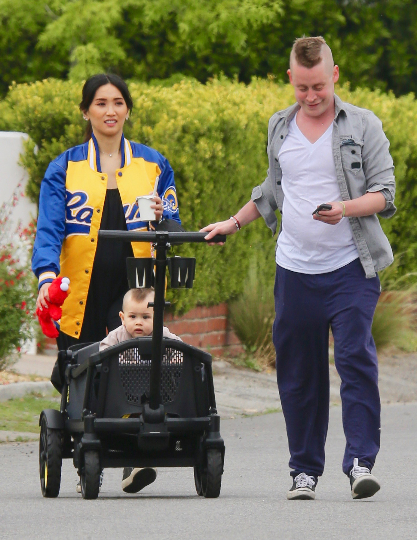 Жениха и невесту регулярно видят на улицах Калифорнии с малышом Дакотой: то на парковках супермаркетов с кучей памперсов и пюрешек, то в парке с мячом и игрушками. Так, совсем недавно семью подловили в очередной раз: Бренда и Маколей, видимо, ездили за покупками. Вы только посмотрите, какие милые одинаковые ирокезы у отца с сыном.