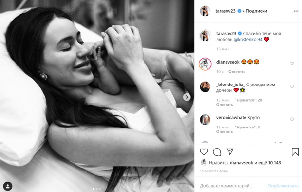Малышка появилась на свет 5 февраля 2020-го в 17:05. Об этом Дмитрий радостно сообщил в своем Инстаграме. «Спасибо тебе, моя любовь», — написал молодой отец и показал первые кадры супруги и новорожденной.