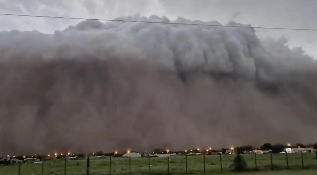 Видео и фотографии, ставшие вирусными в Cети, запечатлели захватывающую, но пугающую картину: гигантская стена тёмно-фиолетовых и свинцовых облаков с невероятной скоростью накрыла город, превращая день в ночь. Пользователи сравнивают кадры со сценами из фантастических фильмов.