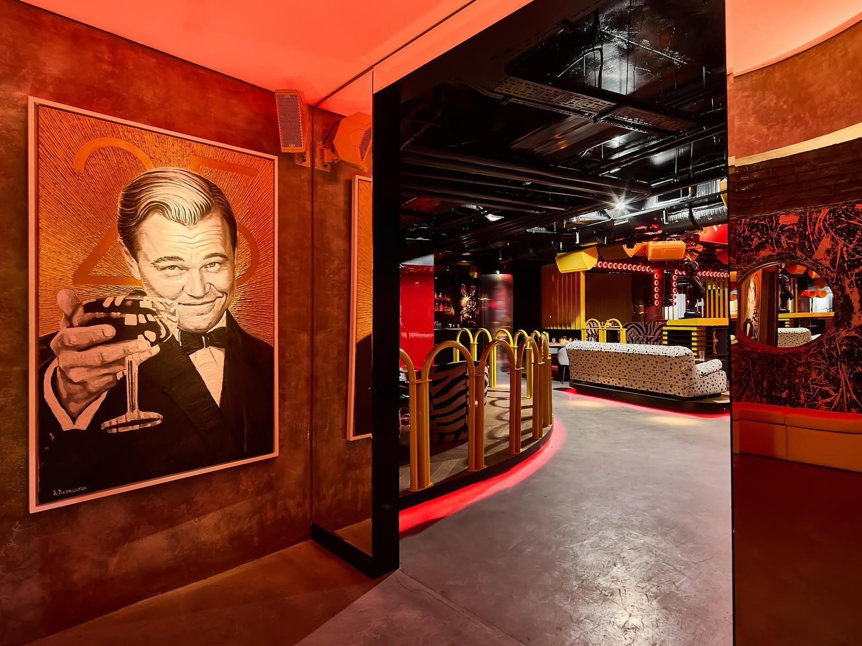Проект Антона Пинского и Тимура Юнусова занял 600 квадратных метров и задуман как «дом артиста». Уже на входе гостей встречает тоннель в стиле винного грота, а дальше — интерьер, собранный из эффектных деталей: арт-объекты из личной коллекции Тимати: хромированный Микки-Маус, фигурка KAWS, витраж с Канье Уэстом, фирменный желтый оттенок Giallo Inti и ощущение продуманного private-пространства.