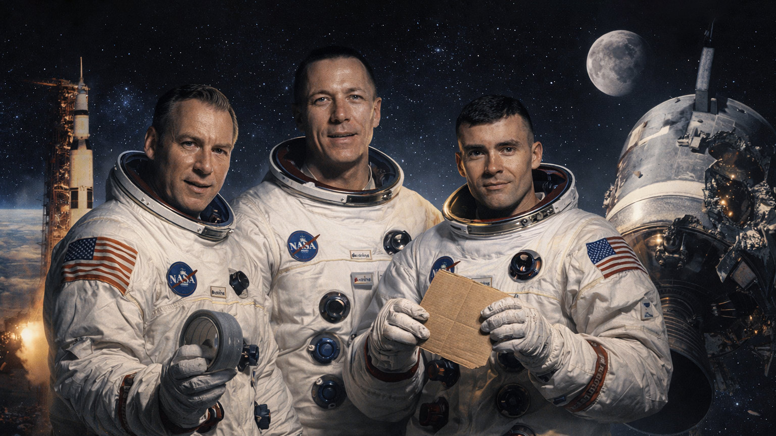 Кем же были люди, сумевшие выжить в открытом космосе с помощью скотча? Давайте вспомним их имена. Итак, капитаном отважной троицы был Джеймс Ловелл — опытный астронавт, уже совершивший два полёта на «Джемини» и облёт Луны на «Аполлоне-8». Пилотом командного модуля был Джон Суайгерт, для него это был первый полёт в космос. Изначально в экипаже был Томас Маттингли, но за несколько дней до старта его заменили из-за отсутствия иммунитета к краснухе после контакта с заболевшим коллегой. А за лунный модуль отвечал Фред Хейз. Он также был новичком в космических полётах.