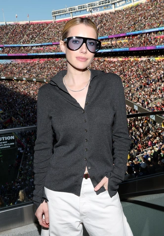 Одним из самых обсуждаемых стал наряд певицы Коко Джонс. Ее костюм от Karl Kani был оммажем тому самому спортивному ансамблю Le Coq Sportif, в котором на Супербоуле 1991 года выступала Уитни Хьюстон. Звездные гости на трибунах тоже постарались над аутфитами: Кароль Джи была в Ann Demeulemeester, Карди Би — в платье Zimmermann, а дочь Бейонсе, Блю Айви, — с сумкой Balenciaga.