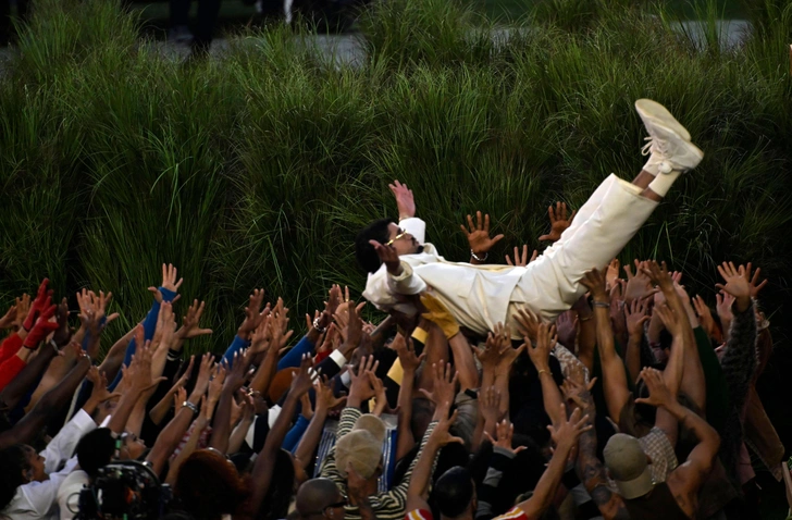 Еще одним знаменательным событием Halftime Show стала настоящая свадьба. Одна пара фанатов когда-то приглашала Bad Bunny на свое торжество, но вместо этого артист предложил им идею покруче — произнести клятвы прямо на сцене Супербоула во врмя его выступления. Получилось очень эффектно и трогательно.