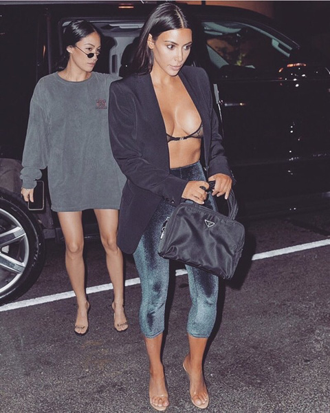 Если вы предпочитаете что-то более эпатажное, то обратите внимание на образы Хейли Бибер и Ким Кардашьян. Например, Ким убеждена, что бархатные легинсы просто идеально сочетаются с такой must-have вещью, как удлиненный жакет. А Хейли остановила свой выбор на блестящем экстравагантном комбинезоне.