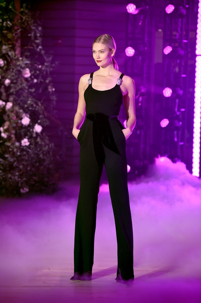 Если вы считаете, что бархат – слишком парадная ткань и надевать ее следует только по праздникам, то обратите внимание на комбинезон Карли Клосс. Он выглядит элегантно, но в то же время довольно просто.