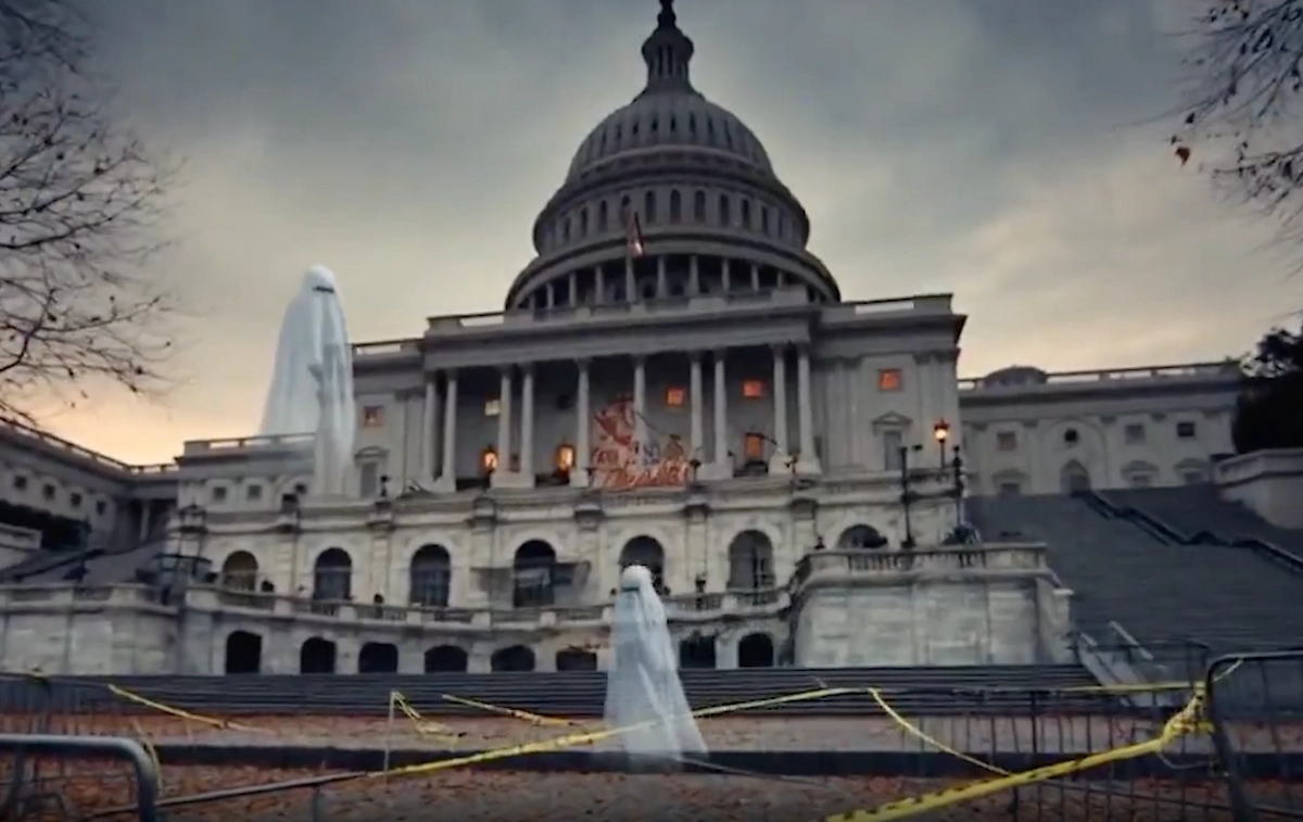 «Демократы исчезают среди американского народа, когда тот больше всего в них нуждается», — говорится в тексте. На видео запечатлён Капитолий, а призраки должны ассоциироваться у зрителей именно с демократами.