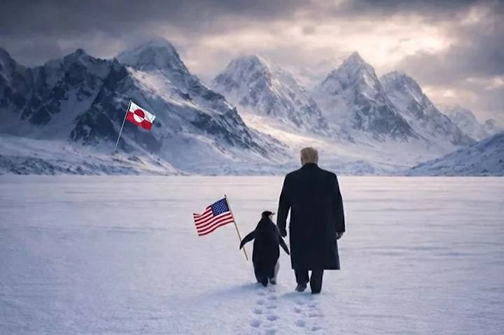 Белый дом опубликовал в соцсети X сделанную с помощью ИИ картинку президента США Дональда Трампа с пингвином, держащим американский флаг, якобы на территории Гренландии. Публикация сразу привлекла внимание пользователей.