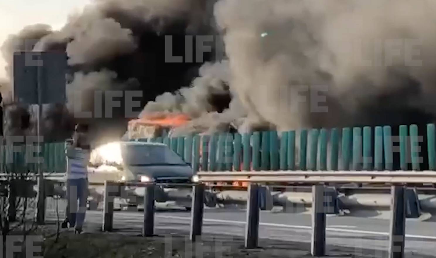 На трассе под Екатеринбургом произошла авария с возгоранием сразу нескольких автомобилей. Видеозапись с места происшествия оказалась в распоряжении Лайфа.