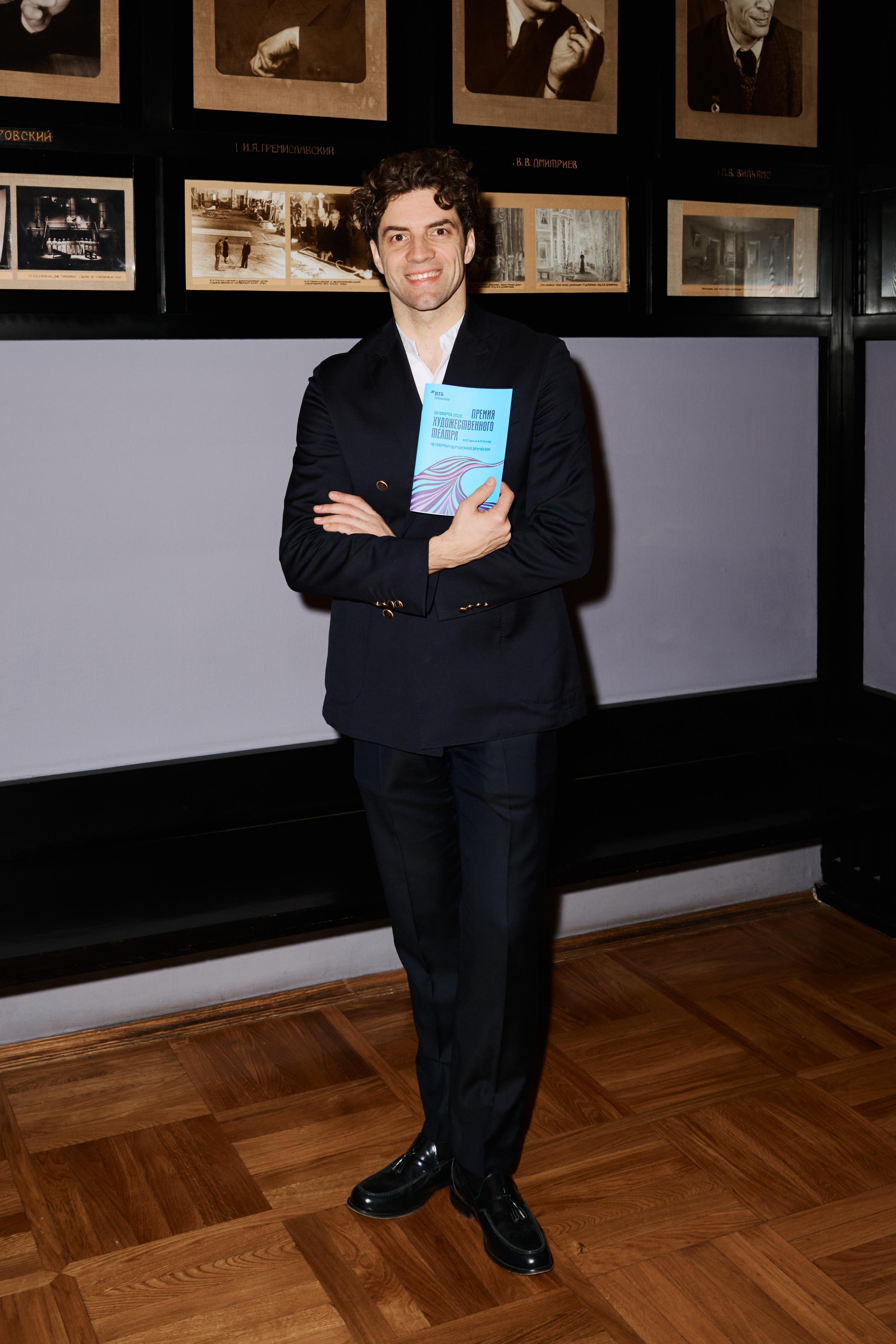 В балетной категории награду вручал премьер Большого Игорь Цвирко. Он поздравил всех с прошедшим Днем работника культуры и наступающим Днем театра, а затем объявил имя лауреата. Им стал Иван Поддубняк, который исполнил партии Конюшего и Спальника в балете «Конек-Горбунок».