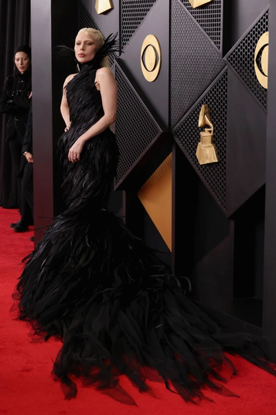 Она появилась на публике в платье бренда Matières Fécales, полностью усыпанном черными перьями, и мало кому такая эстетика подходит больше, чем «маме монстров». На этом эксперименты артистки не закончились и вскоре она переоделась в архивный Alexander McQueen, чтобы в нем получить награду в номинации «Лучший поп-альбом» за свою седьмую сольную пластинку Mayhem.
