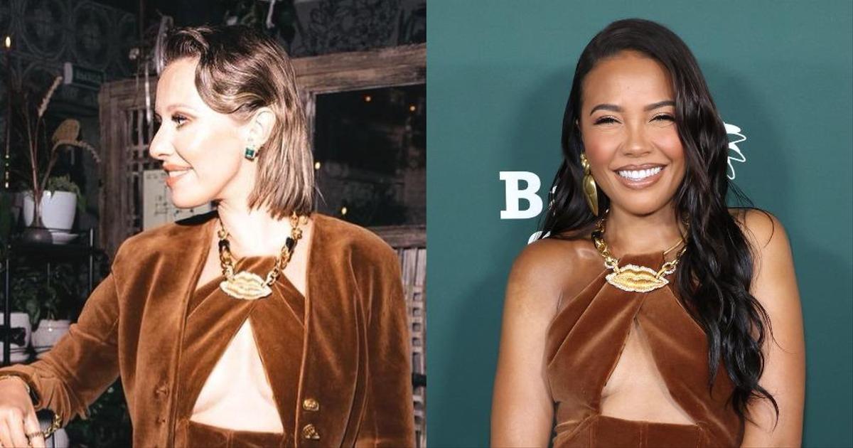 В похожей ситуации недавно оказались Ксения Собчак и британская предпринимательница Эмма Греде. Они тоже вышли в свет в одинаковых нарядах, к счастью — с разницей в несколько дней и в разных уголках мира. 5 ноября Ксения Собчак в коричневом бархатном платье Schiaparelli с украшением в виде золотых губ. А вечером 11 ноября в точно таком же образе на благотворительном гала-ужине Baby2Baby в Лос-Анджелесе появилась бизнесвумен Эмма Греде.