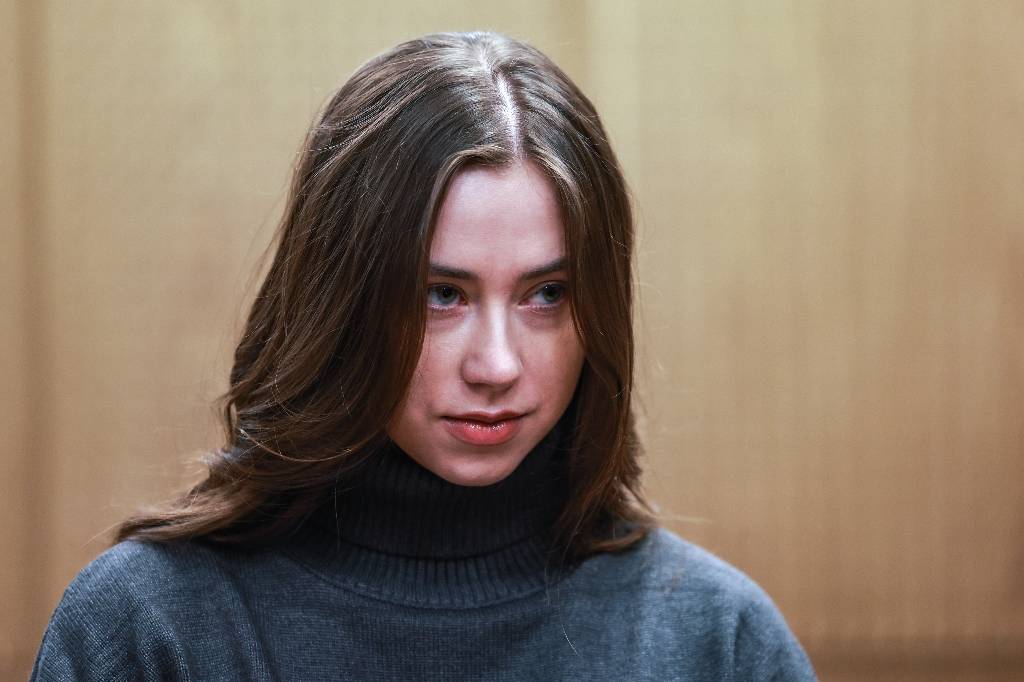На заседании девушка появилась в повседневном образе — сером худи и широких джинсах. Несмотря на строгий стиль одежды, внимание присутствующих привлек электронный браслет на ноге фигурантки.