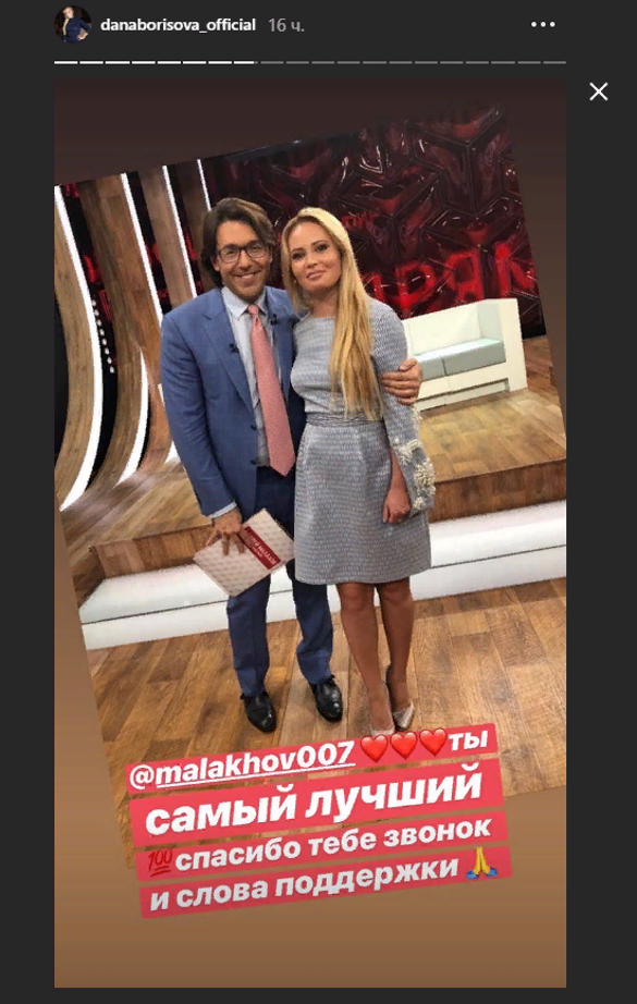 "Сказал, что мне необходимо сменить обстановку, СПАСИБО ❤❤❤, не обращай внимание на наезды семьи Галкиных и Пугачевых ????Ты Журналист и ведущий номер 1, и это даже не обсуждается ????????????", – заявила Дана Борисова.