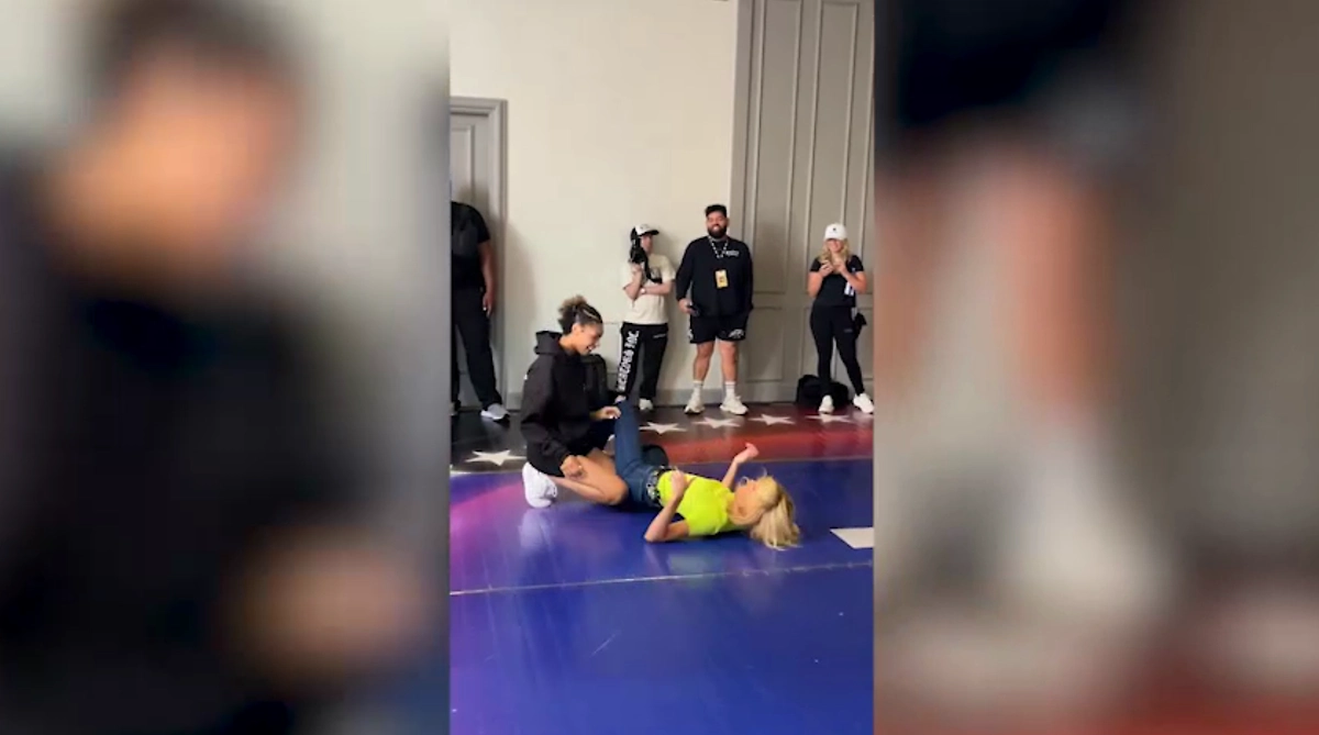 Американская спортсменка по вольной борьбе Кеннеди Блейдс продемонстрировала бросок в прямом эфире телеканала Fox News, повалив на пол ведущую Эбби Хорнасек. Об этом People.