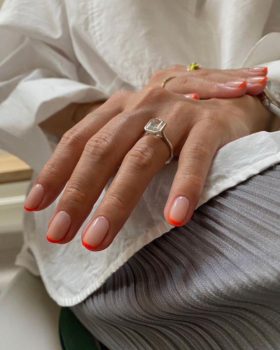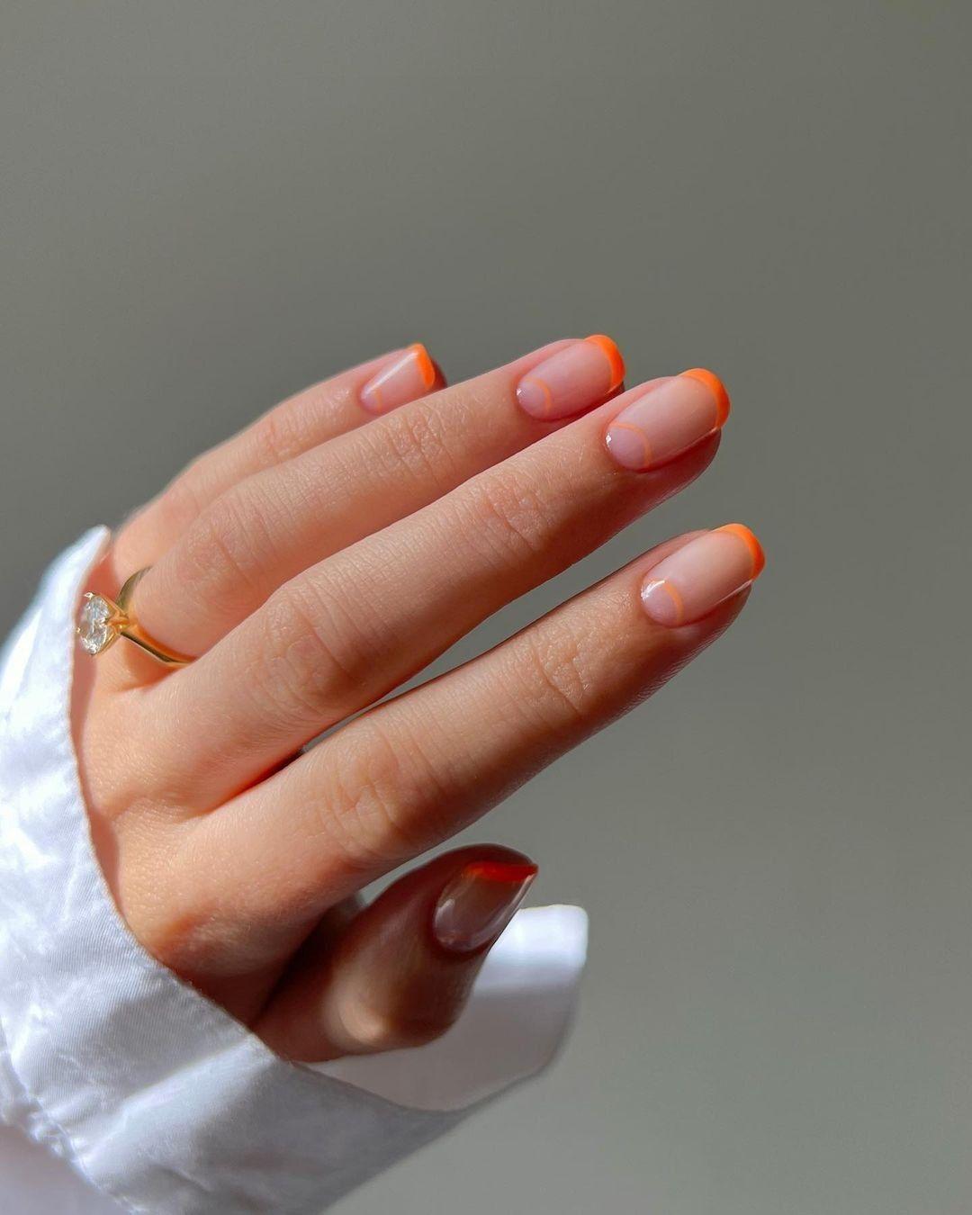 В марте советуем зарядить классику энергией нового сезона. Для этого просто замените белую линию улыбки френча на сочный апельсиновый цвет. А если захотите чего-то более креативного, выберите двойной контур. Такой дизайн мгновенно преобразит маникюр, и сделает классику свежее и современнее. Этот денежный маникюр будет работать на привлечение динамичных проектов и щедрых возможностей, ведь оранжевый — это и есть ваше новое золото, символ энергии, энтузиазма и щедрого потока.