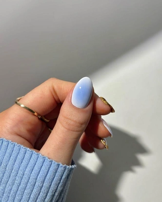 Начнем с ледяного голубого — одного из главных оттенков 2026 года. Если раньше холодные голубые тона были просто сезонным трендом, то Ice Blue (и его вариация в палитре Pantone Ice Water) сегодня претендует на роль нового базового цвета. И этот оттенок чистого ясного неба идеально подходит для денежного маникюра на март 2026. Он символизирует ясность ума, открытость и новые перспективы, помогая «очистить» финансовые планы от сомнений и привлечь свежие, нестандартные возможности. Этот одновременно свежий и благородный цвет сможет зарядить вас легкостью и уверенностью, а также станет напоминаем, что путь к цели может быть чистым и вдохновляющим.