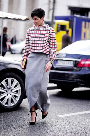 Для деловых встреч она, как правило, выбирает широкие юбки и рубашки в мужском стиле.