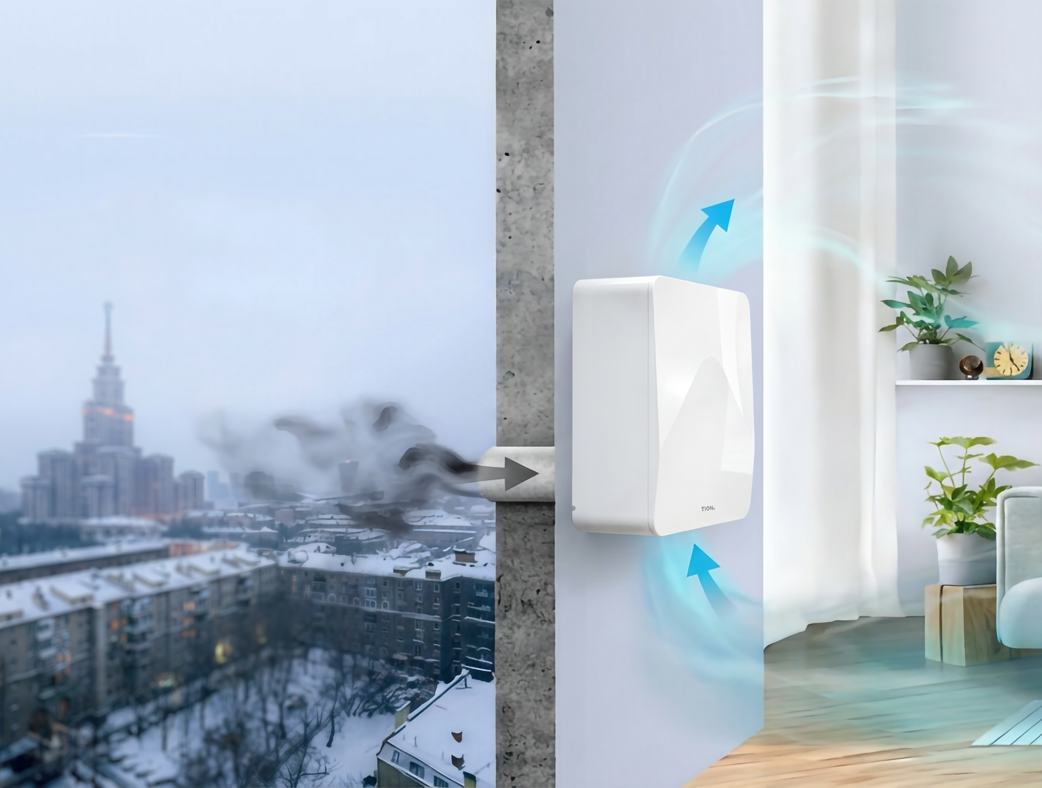 Бризер — это прибор для безопасного проветривания при закрытых окнах, как следствие, уличный шум, пыль, пыльца, насекомые тоже остаются за стеклом. Устройство придумано в России и учитывает климатические особенности нашей широкой страны: диапазон рабочих температур — от +50 до –40 градусов. Управлять бризером легко с помощью пульта, через приложение или голосового помощника.