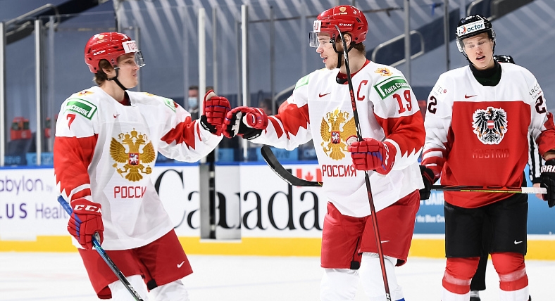 На молодёжном чемпионате мира в Эдмонтоне сборная России со счётом 7:1 разгромила команду Австрии.