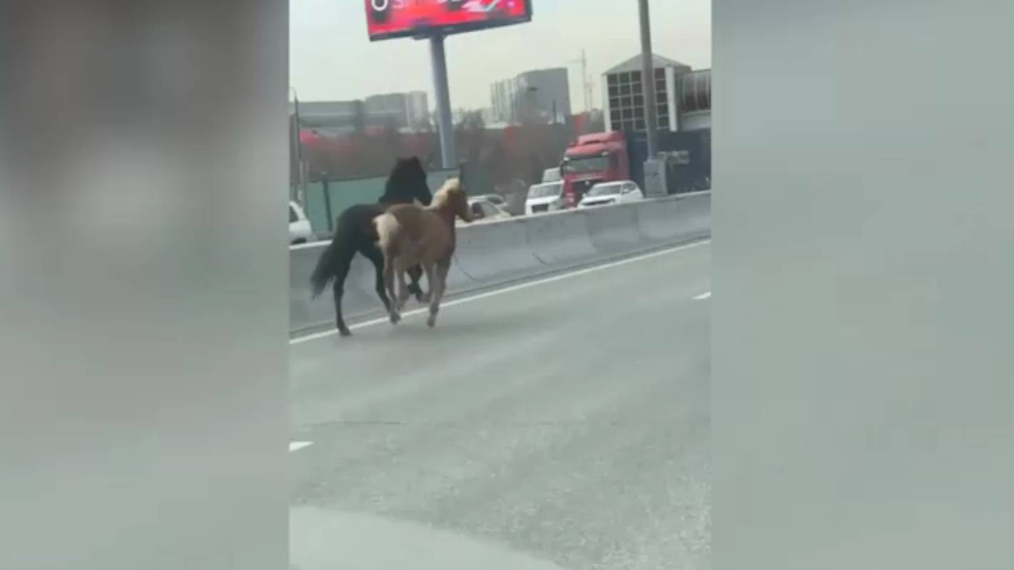 Необычный инцидент произошёл на Московской кольцевой автодороге (МКАД) — два жеребёнка устроили забег по крайней левой полосе, чем немало удивили автомобилистов. Водители успели заснять редкое зрелище на камеру. Лошади двигались строго друг за другом, не меняли скорость, не совершали резких манёвров и даже не пытались «перестроиться».