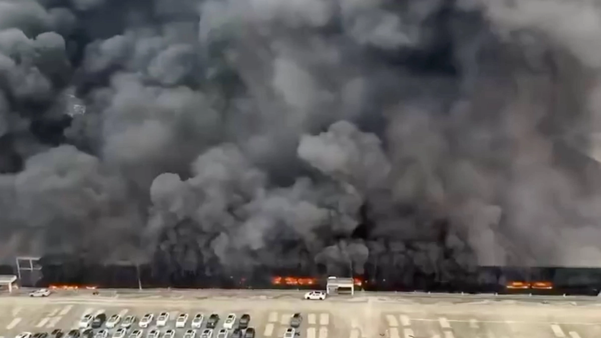 На кадрах, снятых очевидцами, видно, как над местом пожара расстилается гигантское облако чёрного смога, затянувшее всё небо. Предварительной причиной возгорания названо нарушение техники безопасности при демонтаже оборудования одним из подрядчиков. Точные причины и обстоятельства произошедшего выясняются.