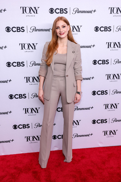 В этом году одной из главных конкуренток Честейн в борьбе за «Тони» стала звезда сериала «Убивая Еву» Джоди Комер. Она тоже достигла немалых успехов, играя на Бродвее, и не захотела уступать ни в профессиональном мастерстве, ни в выборе образа для красной дорожки. Как и Джессика, Комер выбрала брючный костюм молочного оттенка, но добавила наряду немного дерзости.