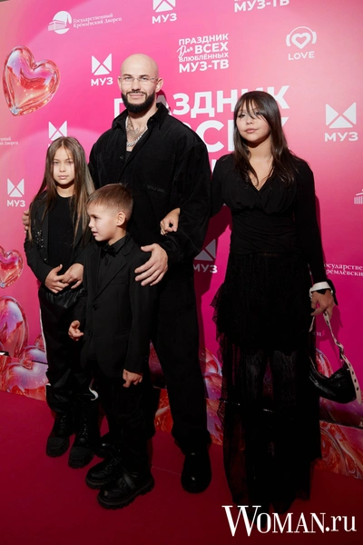 Джиган появился на концерте вместе с детьми — дочками Леей и Маей и сыном Давидом. Несмотря на праздничную атмосферу и обилие розового вокруг, семья рэпера появилась на красной дорожке в total-black образах.