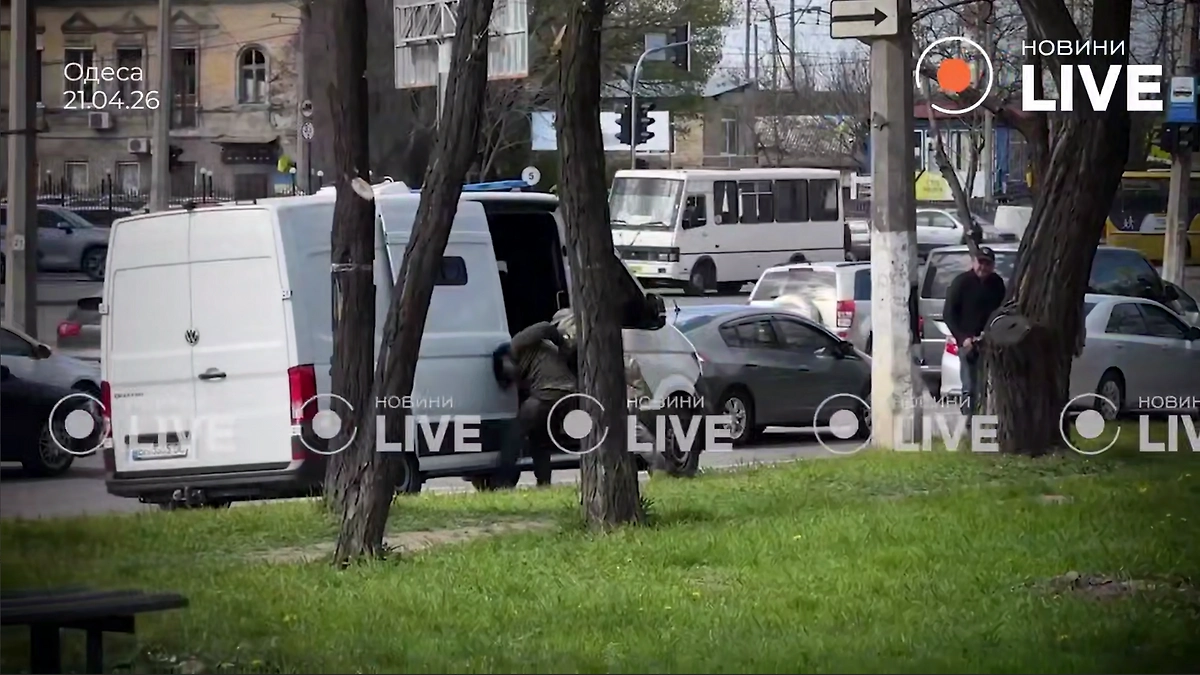Момент «погрузки» сотрудника ТЦК в бусик в Одессе бойцами СБУ попал на видео. Кадры публикует телеканал «Новости.LIVE».