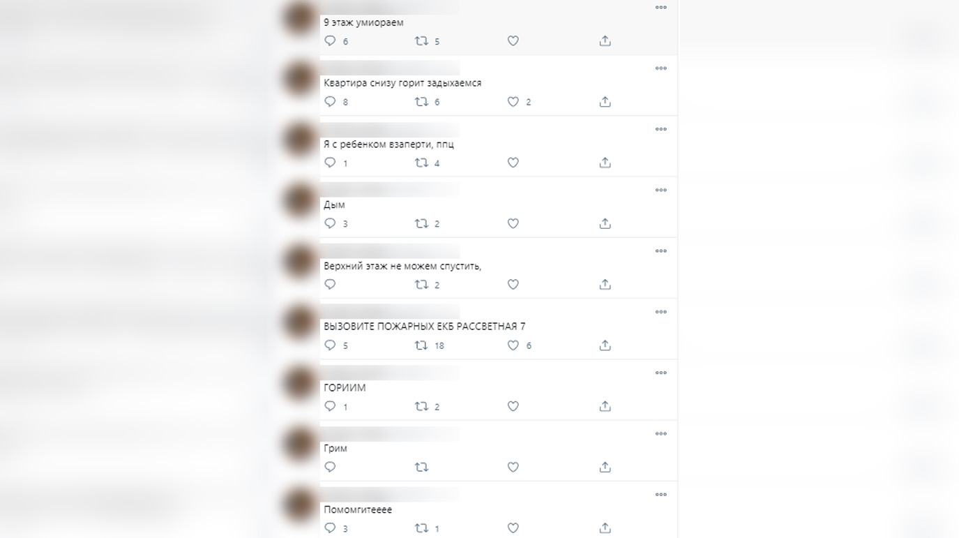 Жительница Екатеринбурга, которая просила о помощи в Twitter во время пожара, не звонила в экстренные службы. Об этом E1.ru со ссылкой на пресс-службу областного ГУ МЧС РФ.
