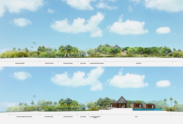 В ходе работы над курортом была совершена пересадка мангровых лесов, а под водой появились искусственные рифы, которые должны содействовать жизни морским обитателям.