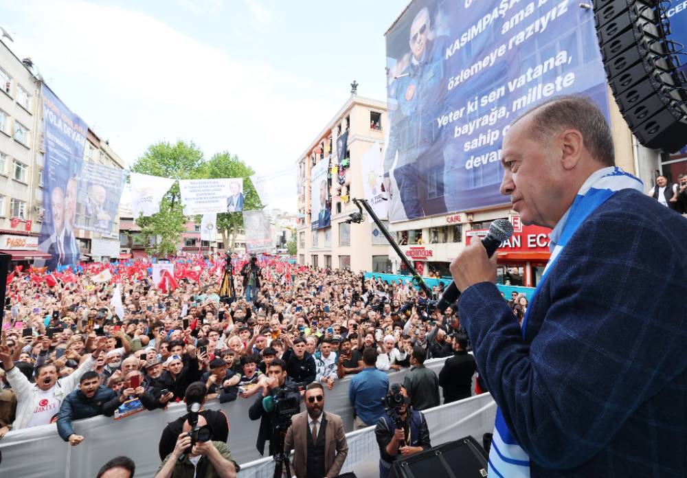 На финальном предвыборном митинге в Стамбуле выступил действующий президент страны Реджеп Тайип Эрдоган. Он произнёс предвыборную речь, а также показал ролики о достижениях турецкой промышленности и спел гимн страны.