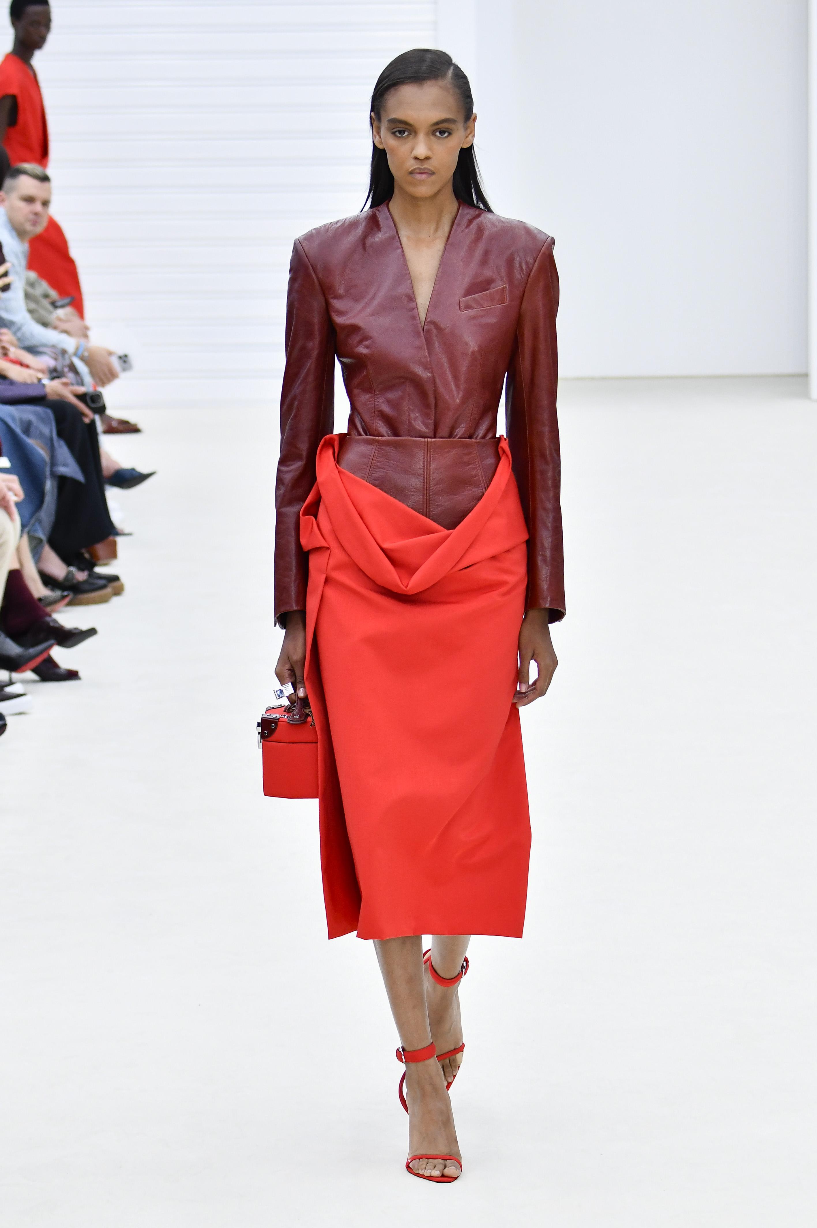 Как вы уже поняли, фасон может быть любой, а вот самая универсальная длина, на которую стоит ориентироваться, — это миди или чуть ниже колена, так называемая мидакси. С ней сложнее промахнуться, и она легко вписывается в любой гардероб. Прямая юбка карандаш будет хороша для офиса или деловых встреч. Пышная макси добавит образу романтичности и драматизма. А струящиеся атласные варианты или модели с драпировкой будут смотреться роскошно и дорого, даже если сверху вы наденете самый обычный хлопковый топ или футболку, как это сделал Пьерпаоло Пиччоли в своей дебютной коллекции Balenciaga. Впрочем, в этом и заключается магия красного: он сам по себе несет смысл и не требует сложного сопровождения.