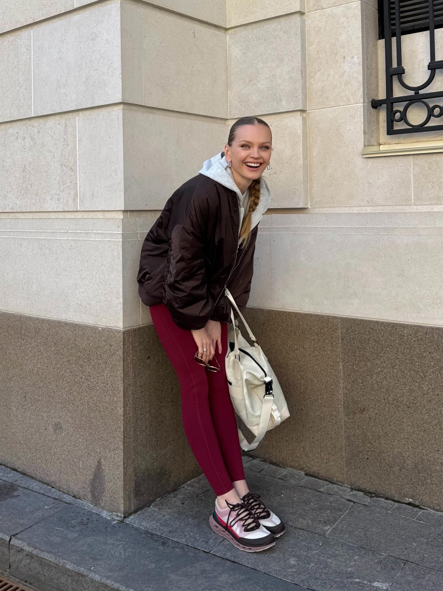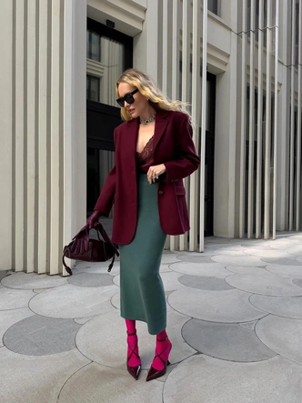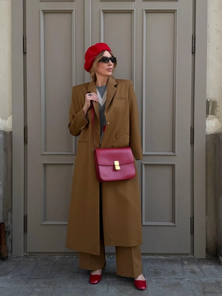 Ну а если вам хочется более смелых, и при этом безопасных сочетаний, берите пример с Оксаны Бондарчук. Оттенок какао звезда удачно дополнила кораллово-розовым акцентом, а комплект цвета охры разбавила нейтральным серым, вишневым и алым. Для нынешней погоды, когда еще рано с ног до головы облачаться в белый и пастель, — самое то.