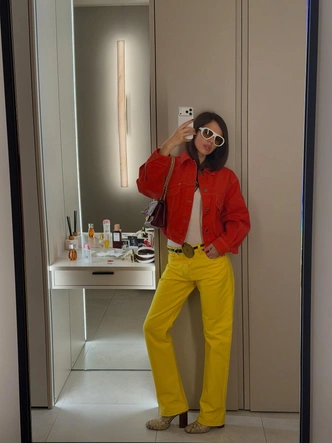 Чего не скажешь о Наталье Давыдовой. Ее эталонные аутфиты смело можно печатать в глянце или сохранять себе для вдохновения. А вот луки Ксении Шипиловой могут сподвигнуть кого-то на покупку очень яркой вещи, ведь эти ультрамариновая шуба, ярко-желтые джинсы и морковный жакет выглядят ну очень эффектно.