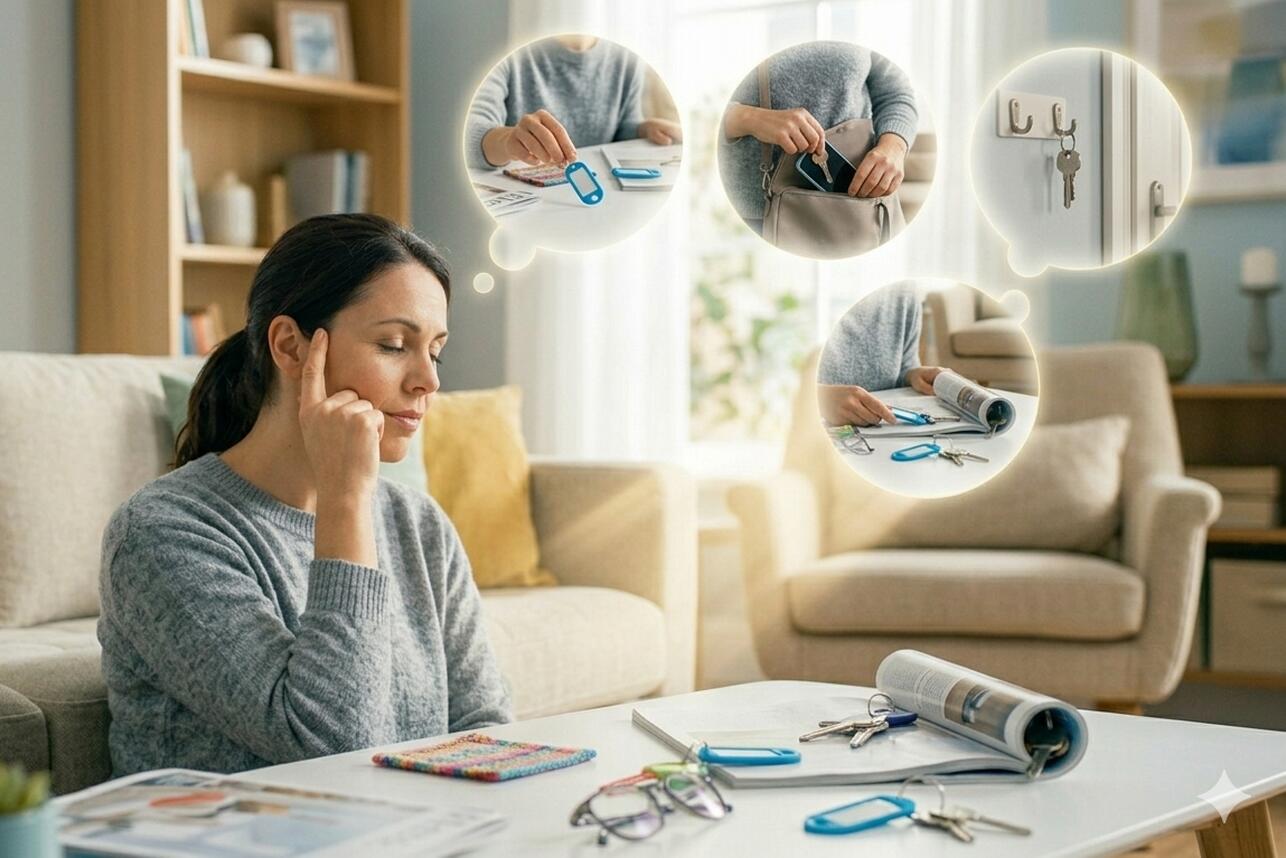 - Озвучка действий: Кладёте паспорт в ящик? Скажите вслух: «Я кладу паспорт в верхний ящик стола». Слуховая память подстрахует зрительную.