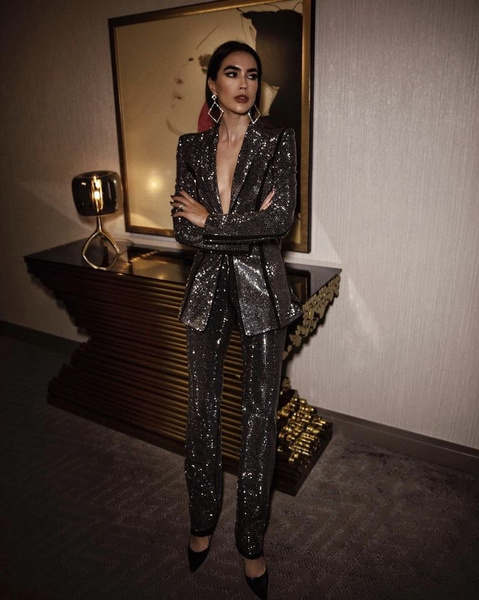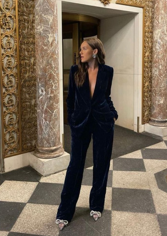 В этот Новый год рекомендуем обратить внимание на приталенные варианты. Оверсайз начинает сдавать позиции (свершилось чудо!), и на фоне мешковатых силуэтов один костюм по фигуре будет смотреться на миллион долларов. Цвет зависит от вашего настроения. Если вы собираетесь оторваться, как в последний раз, ищите модели с пайетками, стразами или из бархата. Если же намерены показать, что не дадите 2023 году испортить вам жизнь так, как сделал это его предшественник, инвестируйте в черный или белый вариант. В таком случае, вместе с отличным аутфитом на Новый год вы также получите две отдельные вещи, которые в дальнейшем можно будет сочетать с чем угодно.
