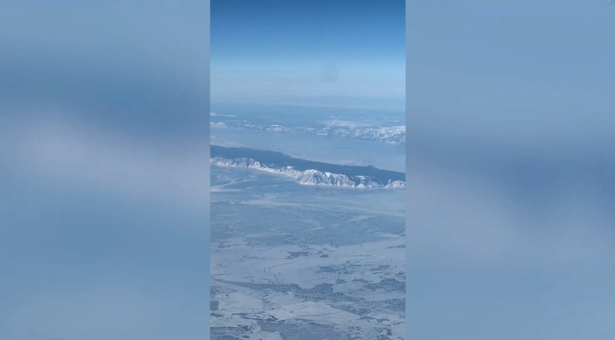 «На видео — замёрзшее озеро Байкал (14.02.2026, рейс Чита-Екатеринбург) с высоты 10 километров. Хорошо видны остров Ольхон и полуостров Святой нос», — написал пилот.