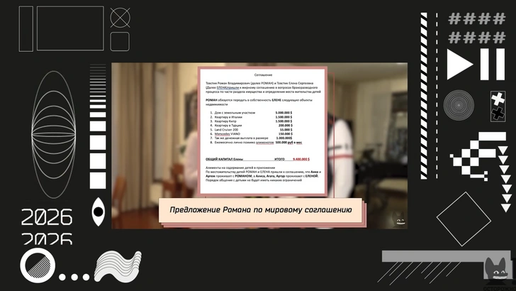 Отдельный блок интервью Гордон посвятила мировому соглашению, которое ей удалось выработать в рамках бракоразводного процесса Товстиков, но которое в итоге так и не было подписано Еленой. По словам юриста, речь шла не о формальных уступках, а о действительно сильном пакете условий, который был достигнут именно на этапе переговоров.