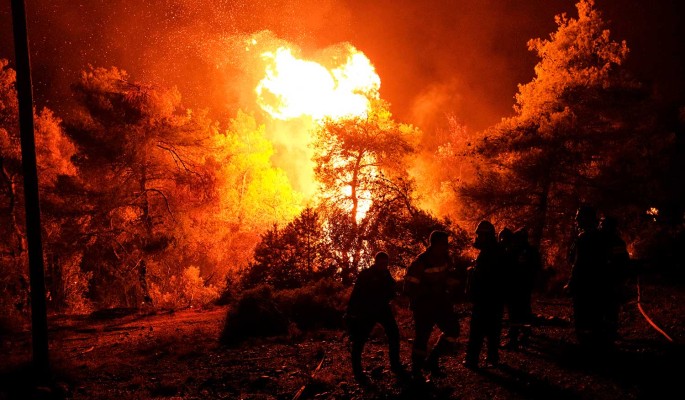 Накануне ночью на острове начался сильнейший пожар. Потушить его не удается – работе огнеборцев мешают жара и ветер. Природный заповедник в центре Эвбеи полыхает словно факел, повсюду чувствуется запах гари.