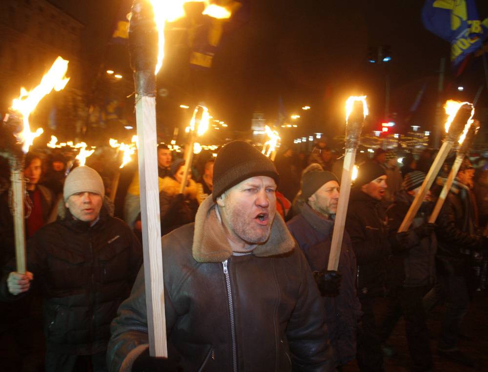 Напомним, 1 января — одного из главных инициаторов создания боевого крыла Организации украинских националистов (ОУН*) — Украинской повстанческой армии (УПА)*. Участники мероприятия дошли до Офиса президента Украины. Собравшиеся выкрикивали различные лозунги, несли флаги Незалежной и праворадикальных движений, портреты идейного лидера. По данным полиции, в марше приняло участие около трёх с половиной тысяч человек.
